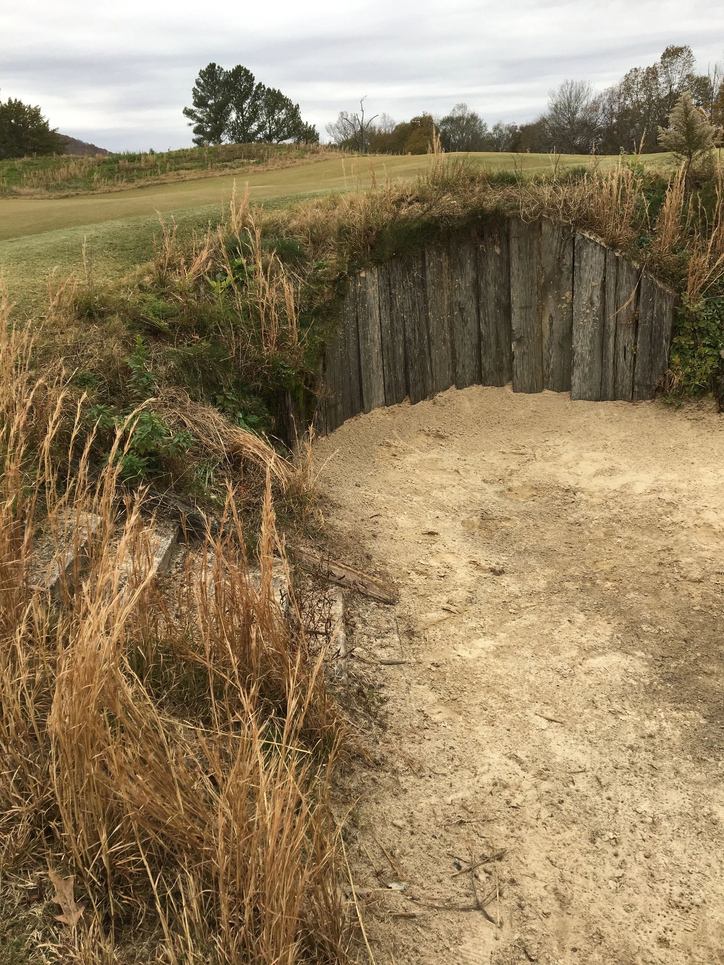 LYING FOUR: My first round at Sweetens, I thinned my iron shot into that green. So after I cursed, it flew over the green, rolled about halfway up that back, and then fed back to about four feet from the hole. And I remember thinking, “Oh, this is gonna be that kind of golf course!”