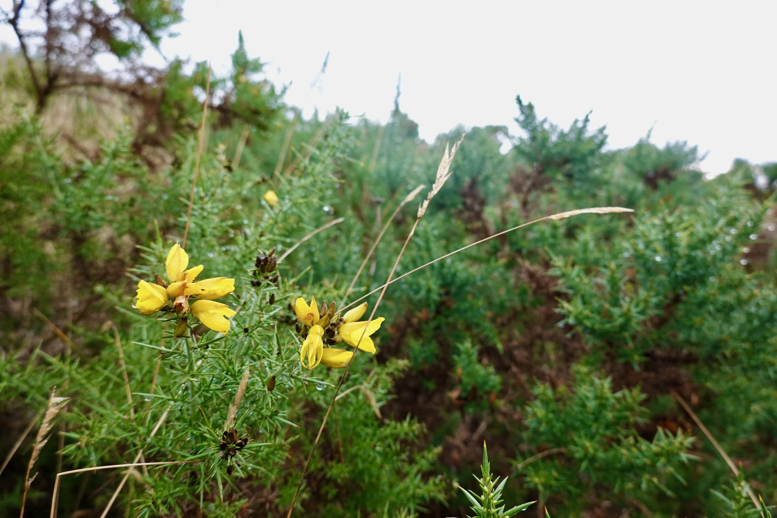 Gorse blooms holding fast in the scrubby links between Dornoch Beach and the golf course.