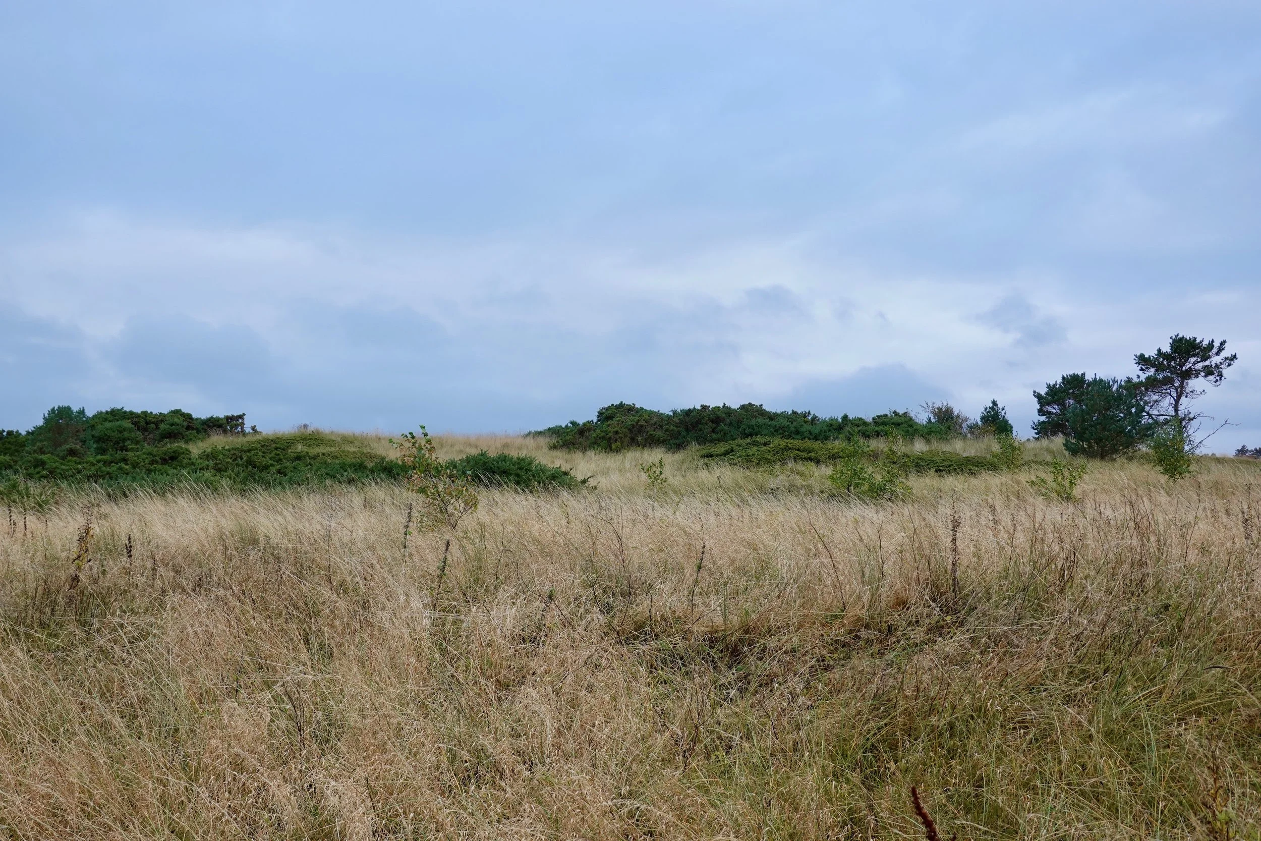A stone’s throw inland from Dornoch Beach, the wind weaves through sand dunes large and small and through the dry, wispy grass.